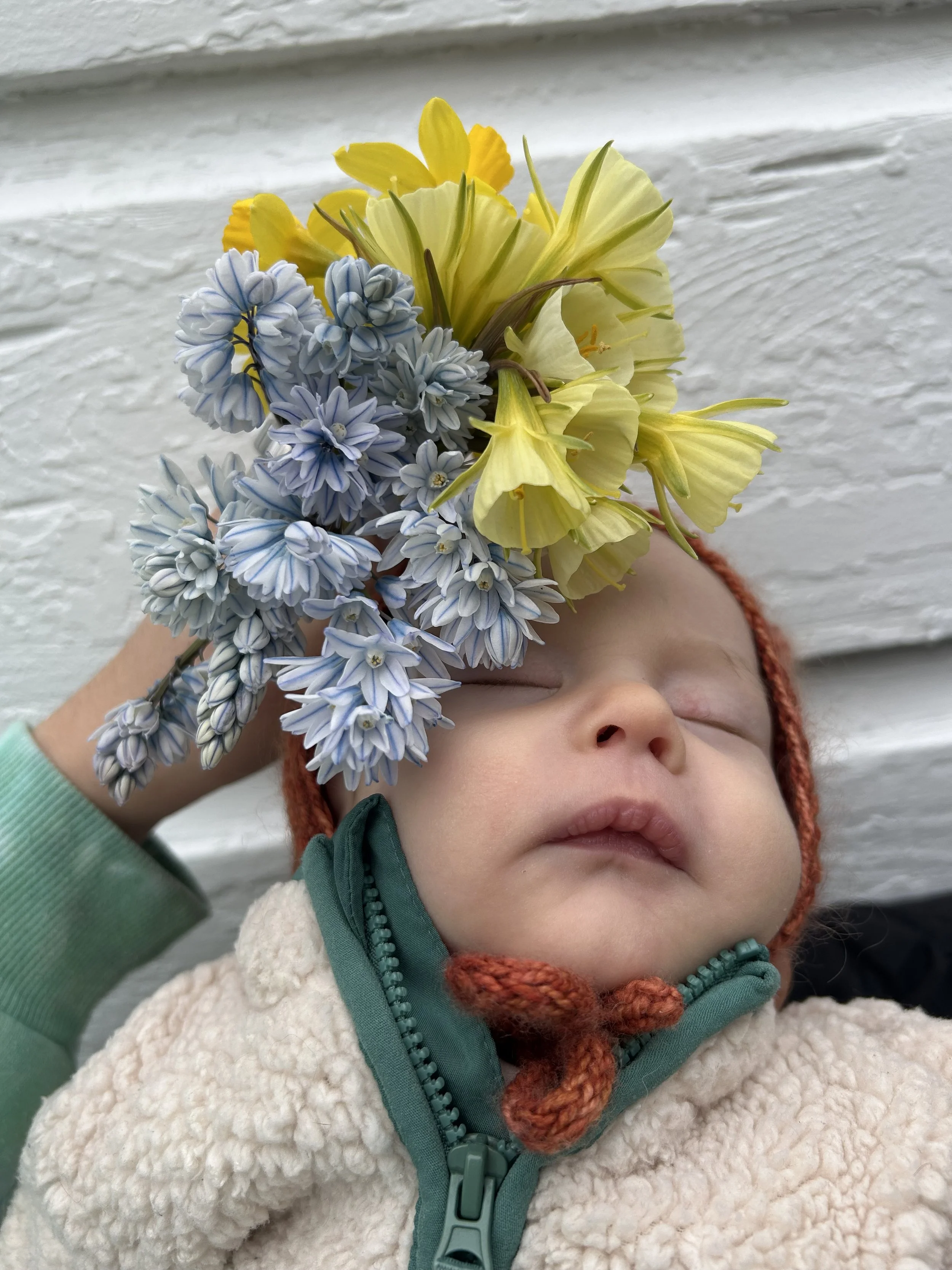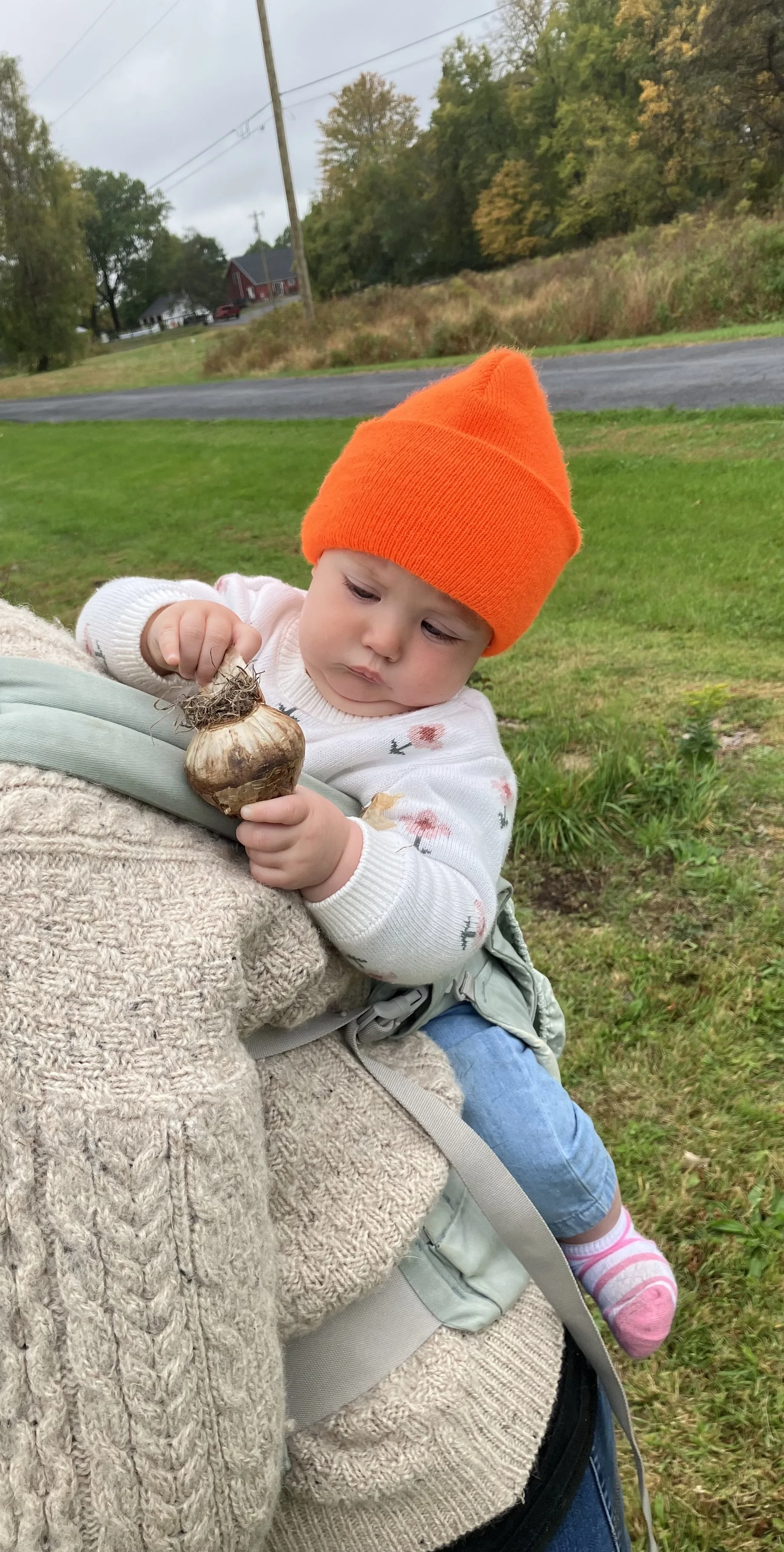 This forced slow pace made me think about how I spend my time farming. What are the things I want to do less of? What are the things I want to do more of? How can I effectively do this while also being as present and available to this tiny human. When it comes down to it I started my flower farm to have the ability to choose how I spend my energy. After years working in commercial Agriculture I wanted the freedom to cultivate plants in a way that felt low impact to our planet. I wanted the freedom that when I had kids that I could be as fully present with them as possible especially when they were young. So much of kids' moral compass, their sense of right and wrong and interpretation of the world is formed before the age of 7 and I wanted to be the adult who teaches them those things. So I made the decision to focus my farm on wholesale sales, growing more perennial plants, buying seedlings instead of starting them and growing as much as I can in bio-mulch. This way I can spend more energy growing, harvesting and teaching my little lady. Less time stressing about weeding, keeping thousands of seedlings alive and being frustrated by the forced breaks that I know motherhood is going to bring.