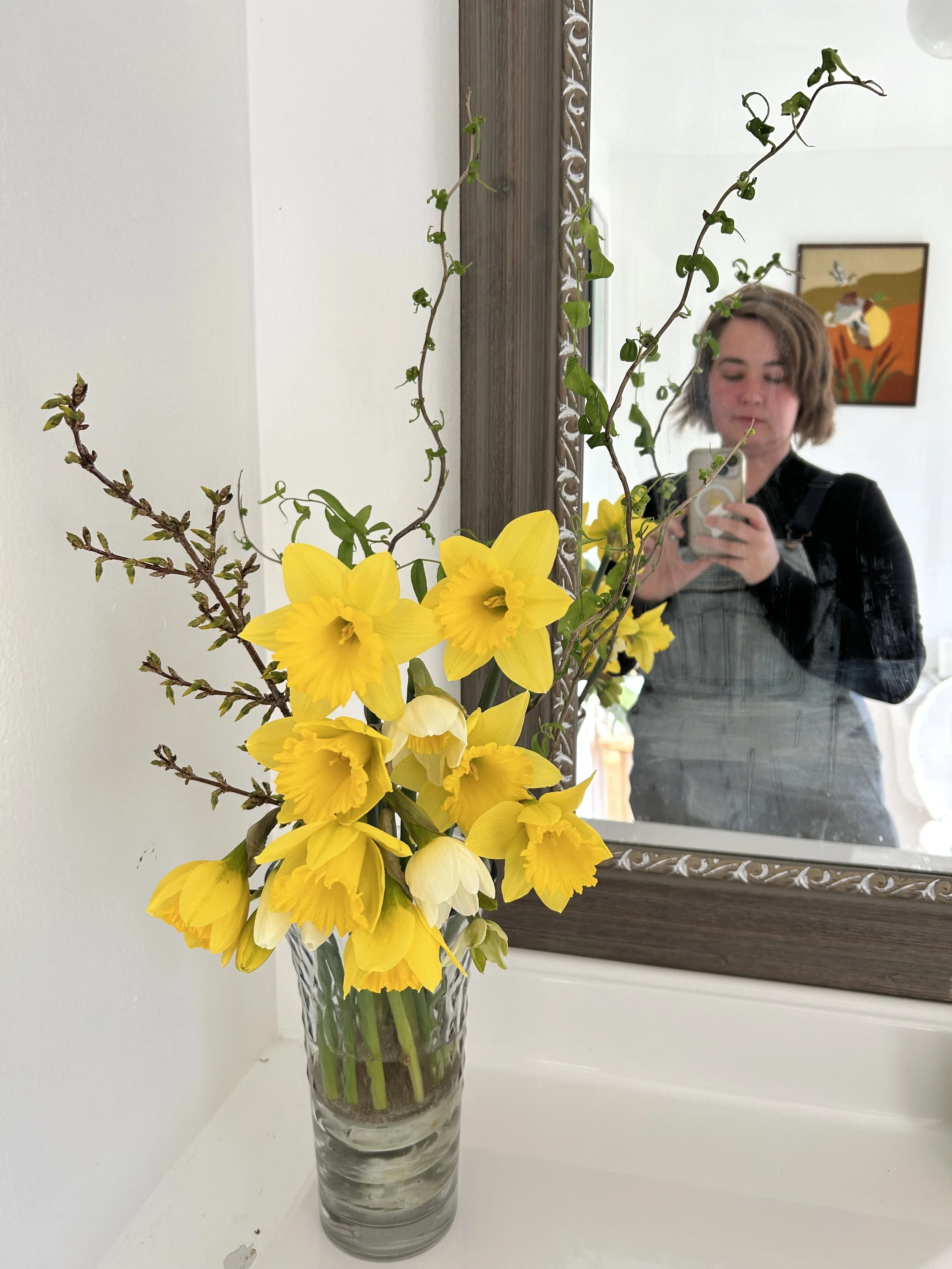 The second practice I’m trying to incorporate-is bringing flowers in my home. After doing all the work of planting, growing, harvesting the flowers I’ve come to find I rarely actually bring them into my home. I preach about their beauty and sell the idea of the joy they can bring into the home but came to find over the years I’ve actually done that less and less. So this season Im committing to making myself an arrangement each week. I plan to share these simple arrangements I make with you all and hope they spark joy for you too.
