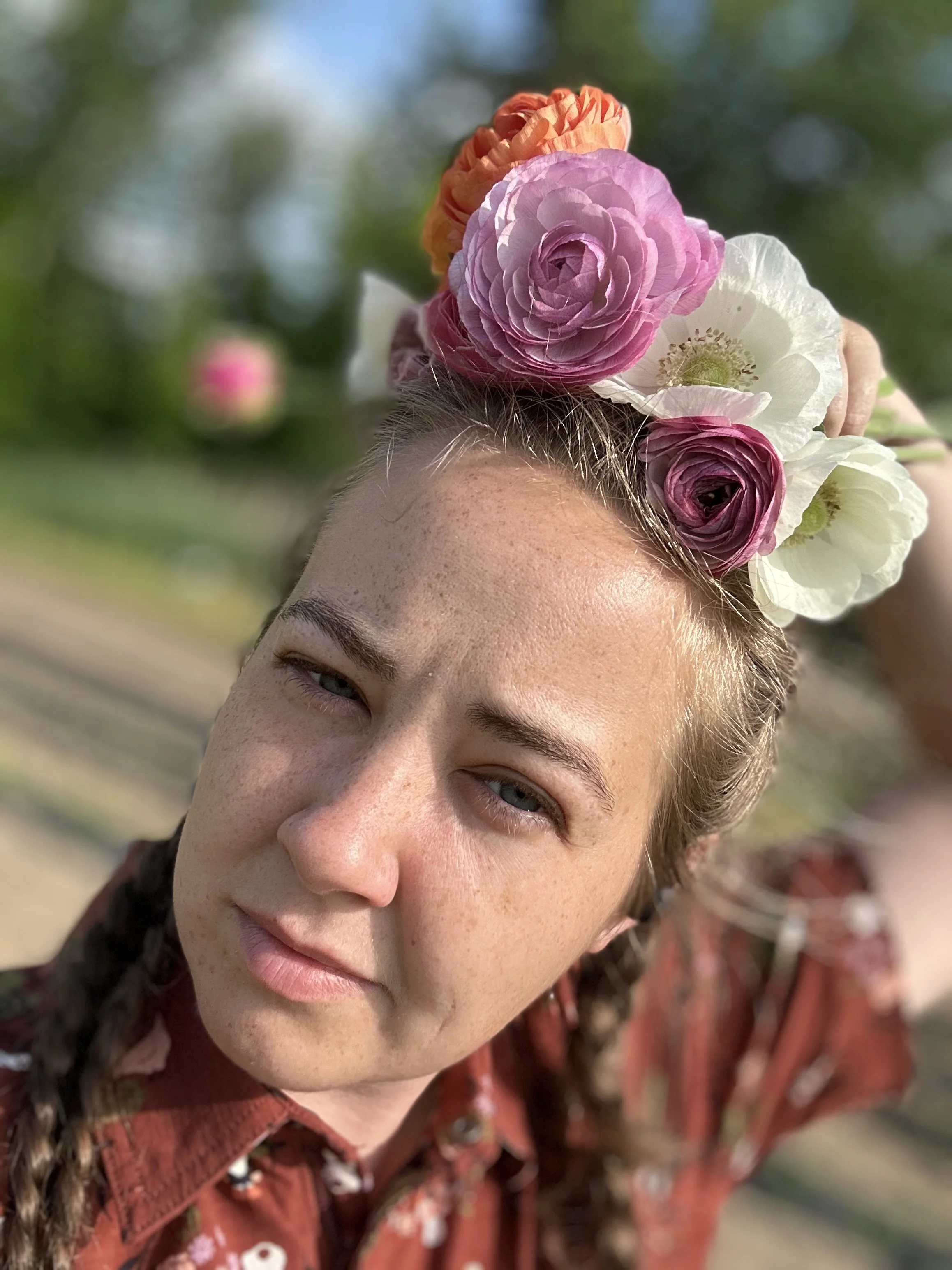 The first is my Frida Kahlo inspired harvest shots. These photo are self of me with a bunch of fresh flowers I just harvested a top my head. I generally take this photos in the field in the process of harvesting or as I’m just finishing. They make me happy, they feel fun and I love looking back at them over the course of the year. They are little snippets of my life capturing a moment in time.